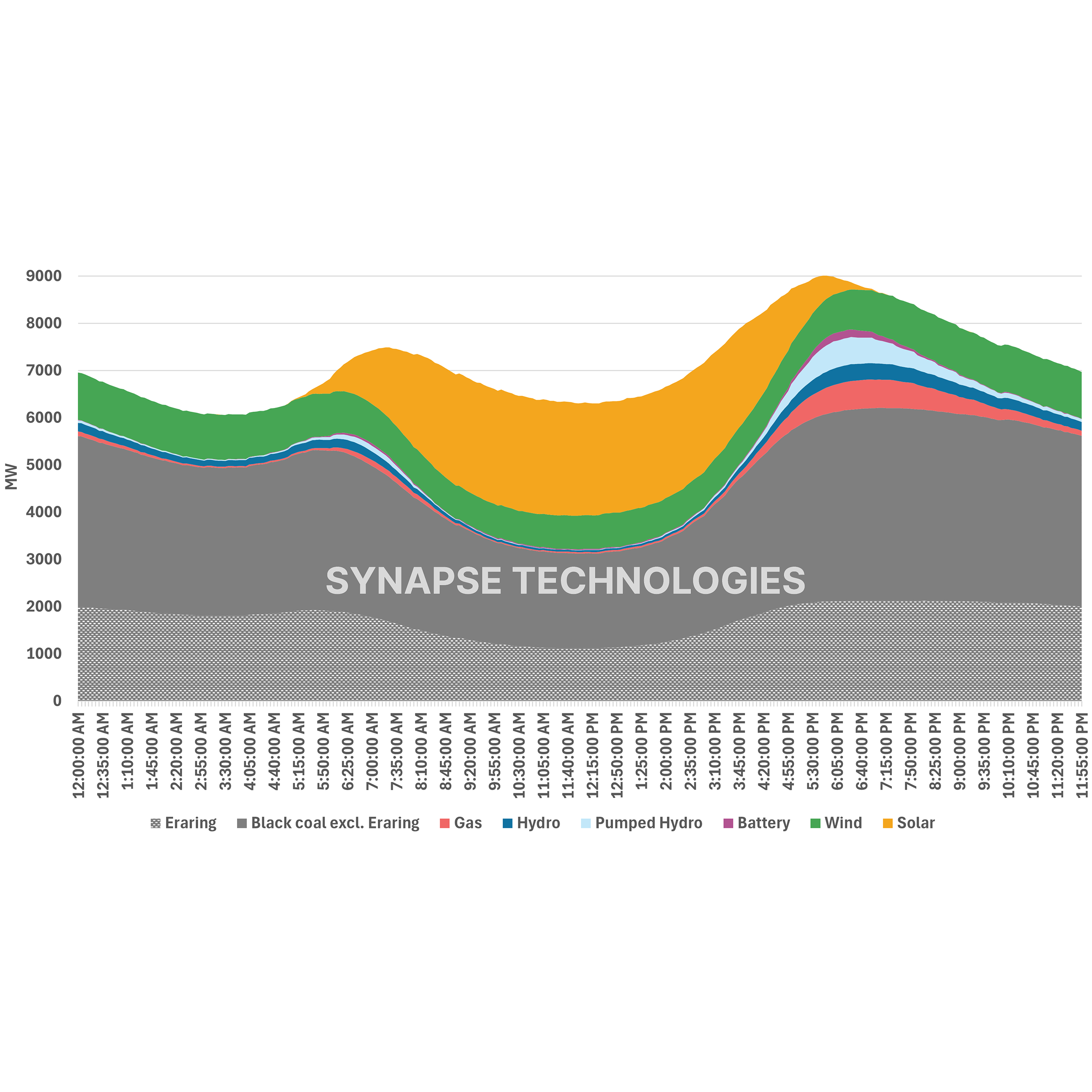 On average, gas generation increases from roughly 117 megawatts during midday periods to about 1.1 gigawatts (2025 average) during evening peaks – a 10-fold ramp within five hours. This enormous swing is primarily caused by rooftop and grid-scale solar displacing gas during the day – in 2017, gas was only doing a 1.5-times ramp.